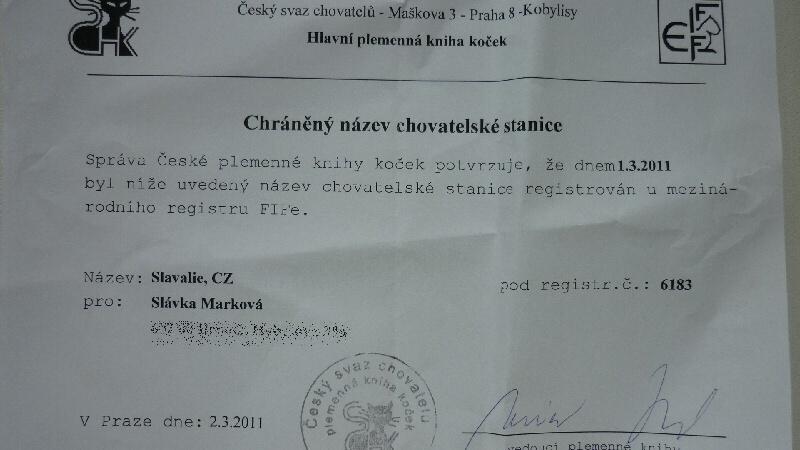 Chovatelská stanice: SLAVALIE,CZ
